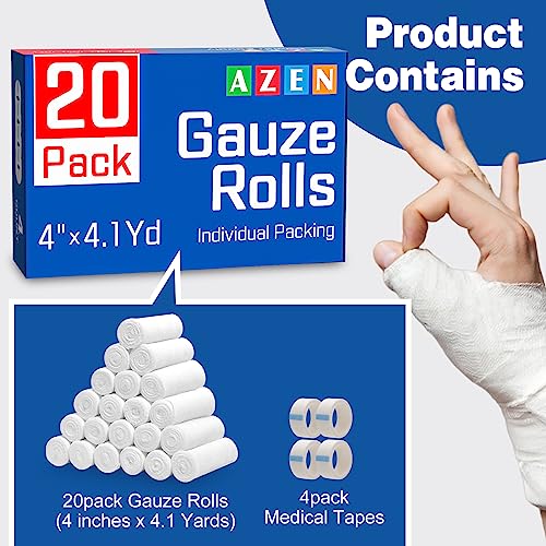 AZEN 20 Pack Gauze Rolls Bandages, 4 in x 4.1 Yards, Premium Medical Supplies & First Aid Supplies, Bandage Wrap Vet Wrap, Mummy Wraps