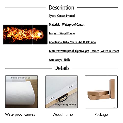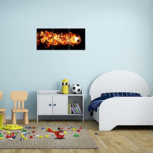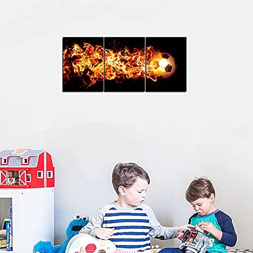 Specification: 3 Pieces Soccer Sport Themed Gym Kids Room Dormitory Wall Art Cool Fire Soccer Boy Bedroom Wall Art Flames Fútbol Artwork for Classroom Wall Décor Childrens Football 12x16inch