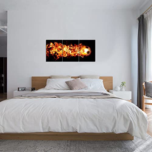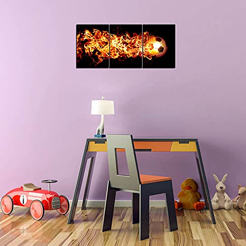3 Pieces Soccer Sport Themed Gym Kids Room Dormitory Wall Art Cool Fire Soccer Boy Bedroom Wall Art Flames Fútbol Artwork for Classroom Wall Décor Childrens Football 12x16inch