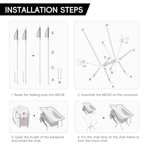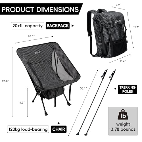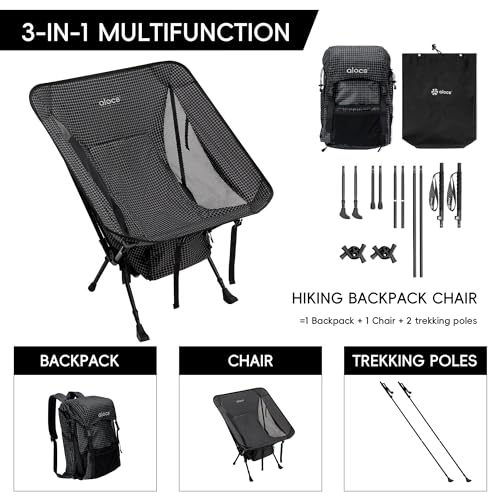 3-in-1 Versatile: Alocs camping chairs combines three essential hiking items into one convenient package. Wearable chair functions as a backpack, a chair, and a set of trekking poles. You can easily convert from a backpack to a chair or attach the trekking poles without the need for any additional tools.