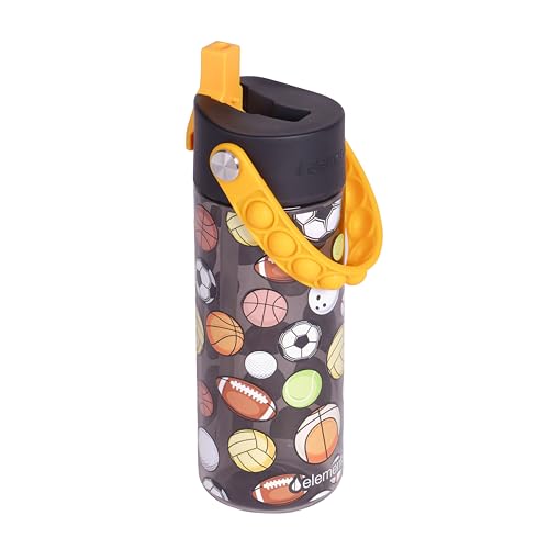Elemental Water Bottles for Kids – Splash Kids Water Bottle for School with Pop-it Handle – BPA Free Tritan Plastic Water Bottle with Straw Leak Proof when Spout is Closed – Sports Ball – 18oz