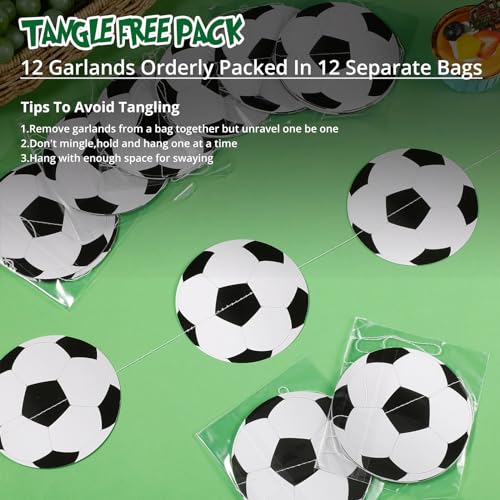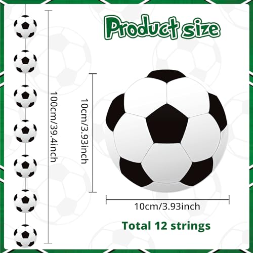 Adequate Package: you will receive 12 pieces of soccer hanging decorations, each garland is approx. 45.28 inches in total length, and each soccer pattern is approx. 3.94 x 3.94 inches/ 10 x 10 cm, enough quantity for you to decorate your party and add charm to your party or photo shoot
