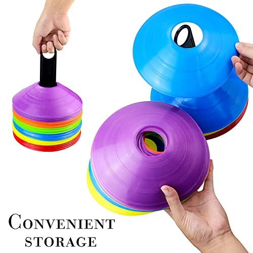 Specification: 60 Pcs Disc Cones – Agility Soccer Cones with Carry Bag & Holder for Sports Training, Soccer, Football, Basketball, Practice Equipment, Field Markers Indoor and Outdoor Games (6 Colors)