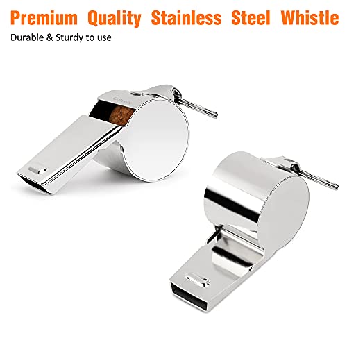 Golvery Metal Referee, Coach Whistle – Stainless Steel – Extra Loud Whistle with Lanyard for School Sports, Soccer, Football, Basketball and Lifeguard Protection etc (Silver-2pcs)