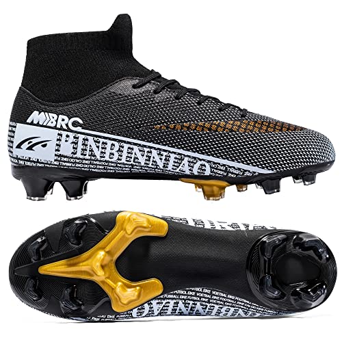 Specification: JIEBUNIAO Men’s Soccer Shoes Professional Spikes Hightop Football Boots Boy Youth Competition/Training/Athletic Sneaker Black 9.5