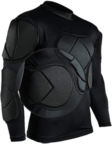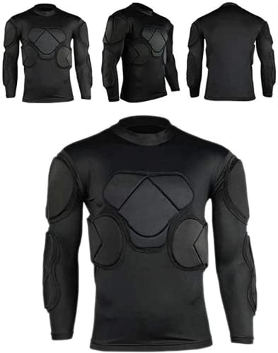Males’s Soccer Soccer Jersey Objective Keeper Goalie Chest Arm Foam Padded Safety Lengthy Sleeve Shirt Compression Tops Black
