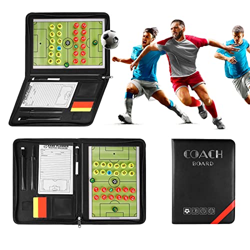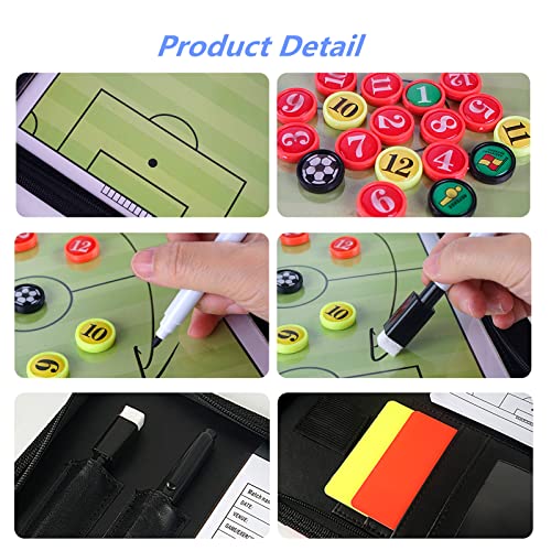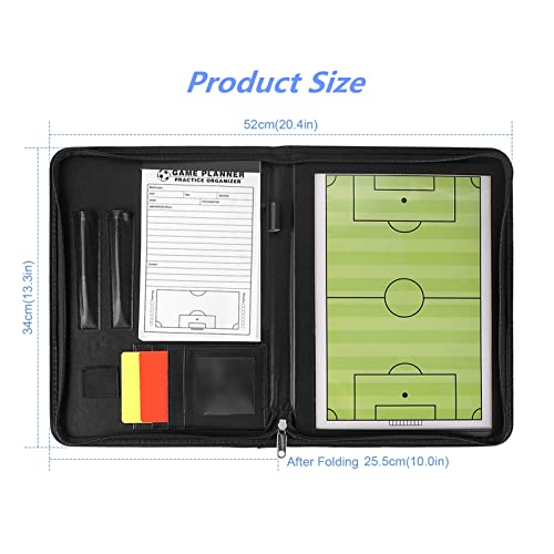 PhantomSky Professional Soccer Magnetic Tactics Board Zipper Type Portable Coaching Board Strategy Board ClipBoard with Whistle, Marker Pieces, Pens, Eraser, Red and Yellow Cards