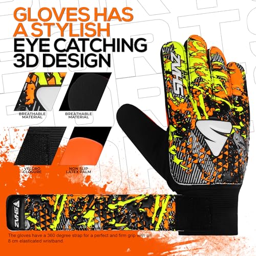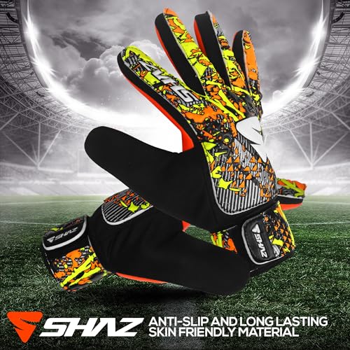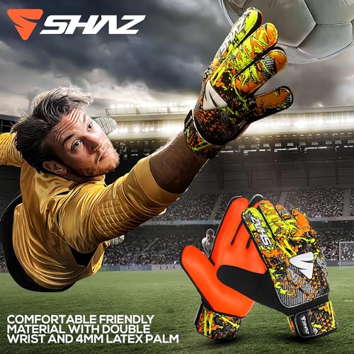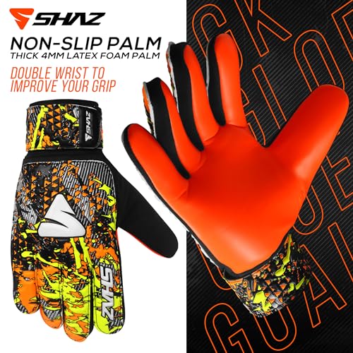 Specification: Shaz Soccer Goalkeeper Gloves for Kids Boys Children Youth,Funky Football Goalie Gloves Anti Slip 4mm Latex Palm with Strong Grip & Double Wrist Protection