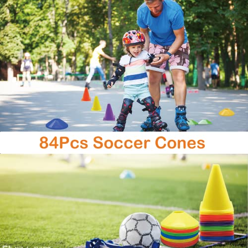 Soccer Cones Set, 84/42Pcs 7″/9″ Cones Sports + Disc Cones, Cones for Sports with Carry Bag, Training Cones, Soccer Cones for Training, Plastic Soccer Cones for Drills