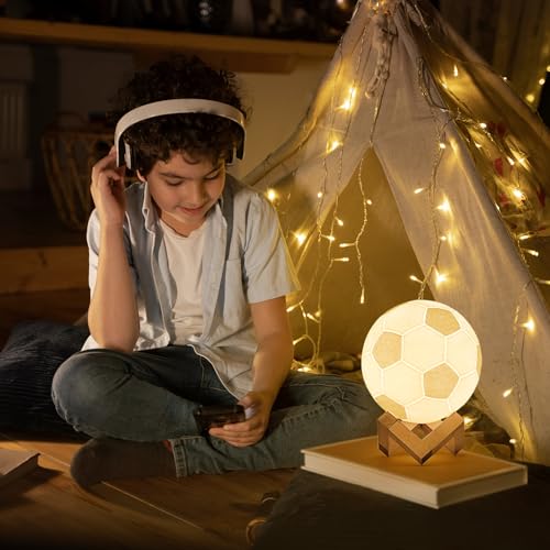 Specification: Mydhall Soccer Lamp Night Light with Remote, 16 Color Bedside Table Lamp for Dad, Men, Boys, and Kids Sports Fan Room Decor, Graduation Gift, Stocking Filler White Elephant Gift (4.7inches)