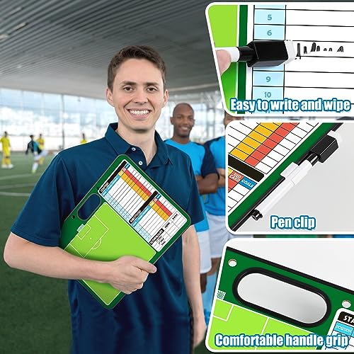 Double-sided Soccer Teaching Board: The entrance aspect of the soccer techniques board is designed with a full view of a soccer courtroom, full with regulation taking part in floor markings. The again aspect has a extra targeted view for in-depth tactical evaluation. Furthermore, there’s a notes part and scoreboard to scribble down a part of the sport plan