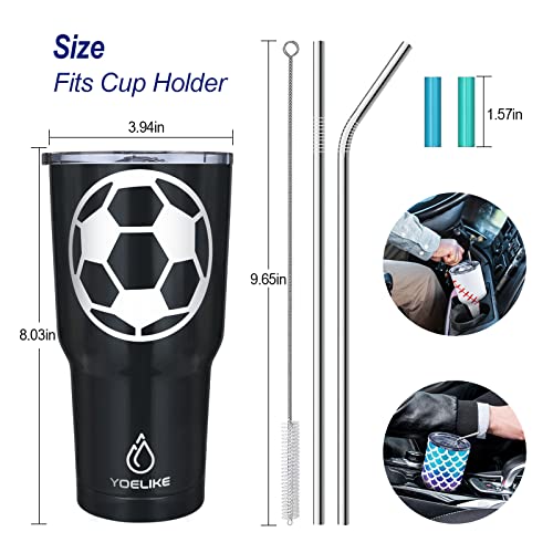 Specification: yoelike Soccer 30 oz tumbler with lid and straw, Stainless Steel, Vacuum Insulated Iced Coffee Tumbler Cup, Leak-Proof Travel Mug, Gift Box For Coach Fan Dad Mon Women Men